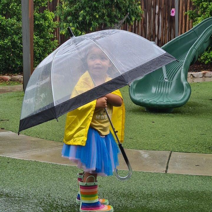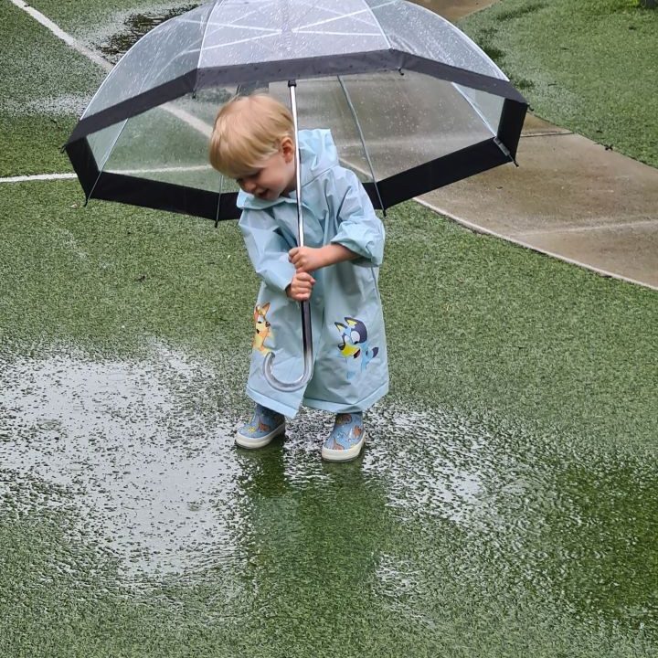 We have also had quite a wet weather event. The early gentle rains were the perfect sensory opportunity for some of our children to experience varying play outdoors.