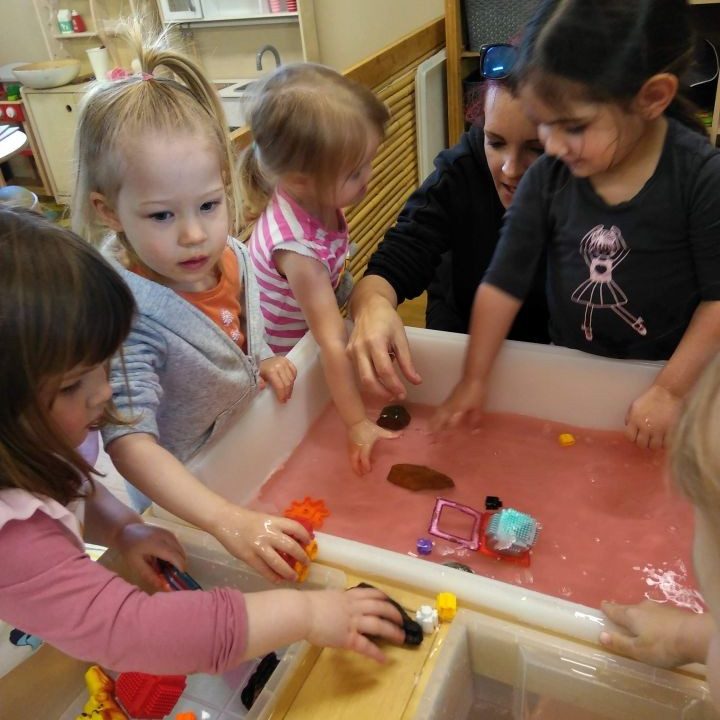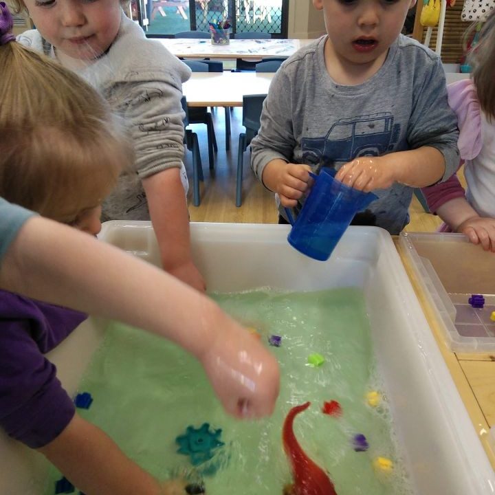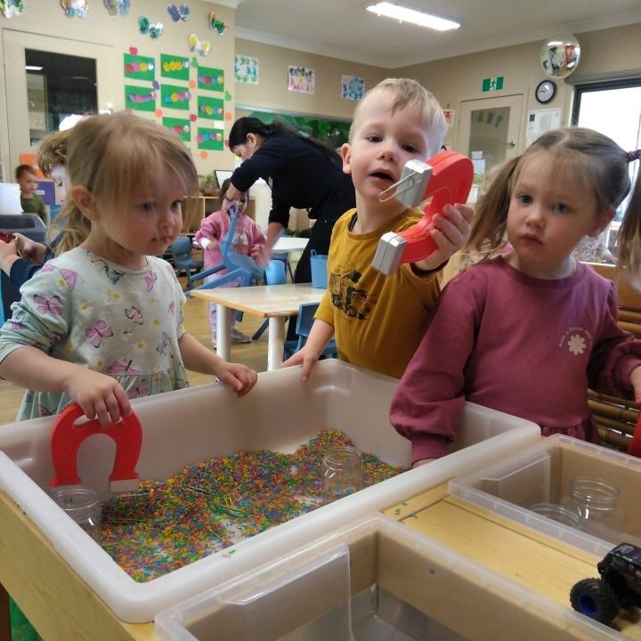 The children then focused on Science Week where this year’s theme was ‘Glass’. The children looked through different coloured glass & told us what they saw, the Educators also incorporated magnets, rice, slime, cotton wool, dye & water into Science Week, which the children really enjoyed as they are learning how things react with certain objects, what things become when you mix them together & cause & effect (float or sink)