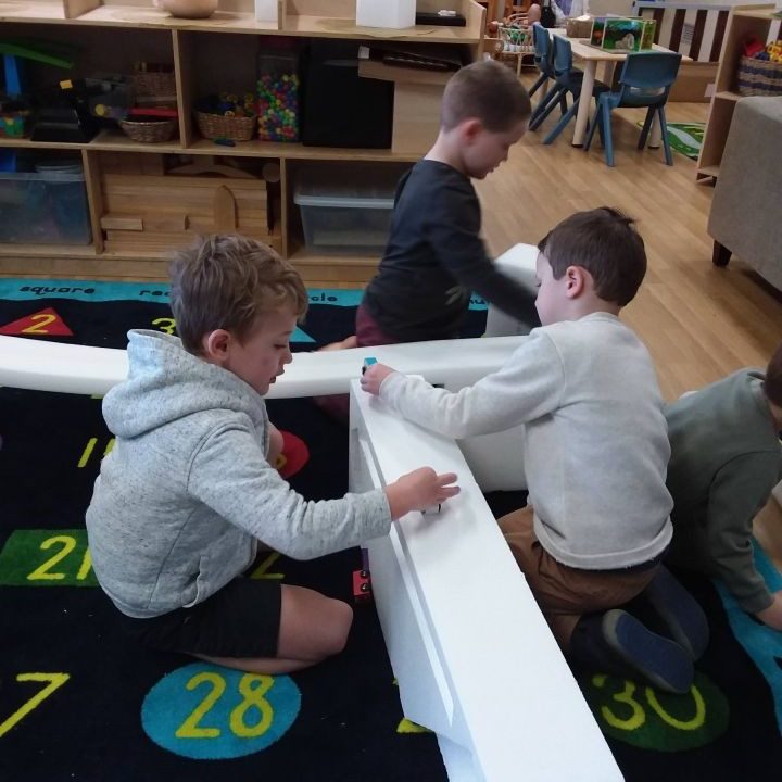 The Kindergarten children also have been very busy creating/constructing roads & tunnels, they have also been designing their very own marble paintings, & caring for the babies in Home Corner.